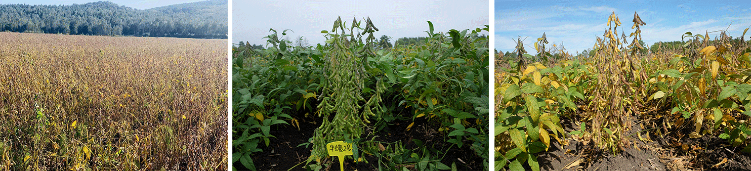 特征特性:该品种为无限结荚习性,株高80—90厘米,株型收敛,紫花、尖叶,灰毛,荚皮深褐色,三四粒荚多,子粒圆形,浓黄,有光泽,百粒重22克左右,蛋白质含量41.21%,脂肪含量20.62%,接种鉴定感灰斑病。在适应区,出苗至成熟生育日数100天左右,需≥10℃活动积温1950℃左右。